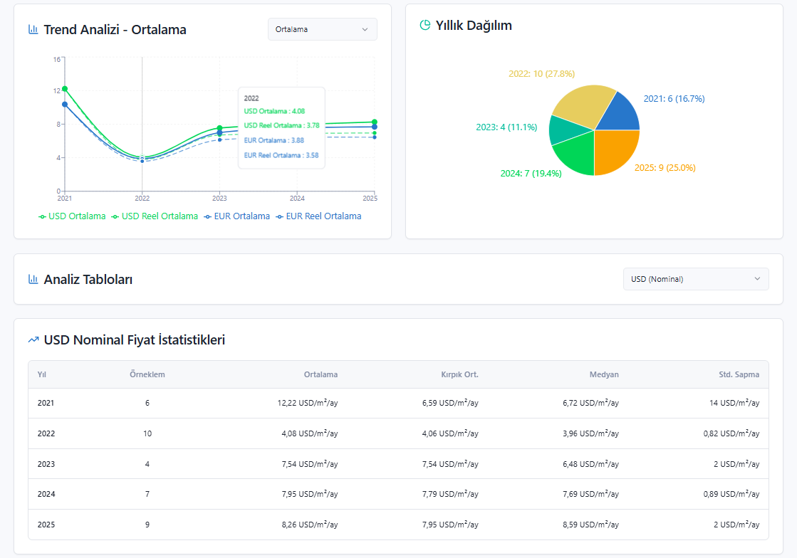 • 2025: 8,26 USD/m²/ay (son veri – güncel seviyeye yakın kabul edilebilir)
