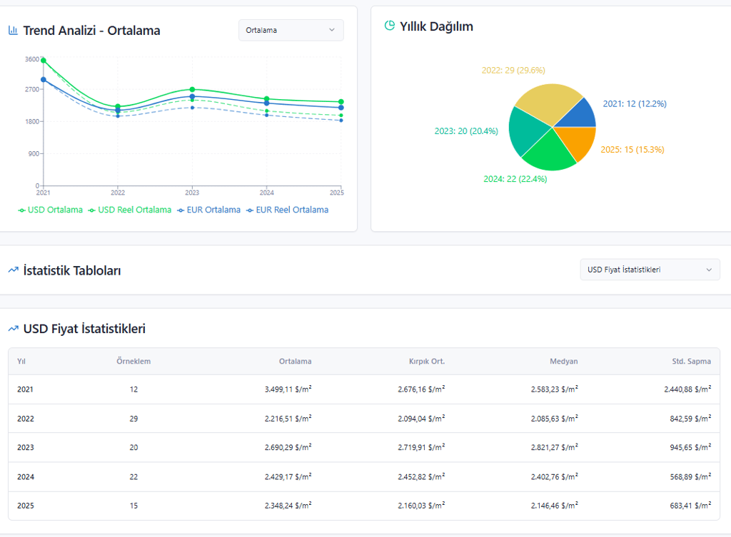 Kırpık ortalama en güvenilir fiyattır → 2025 = 2.160 USD/m²